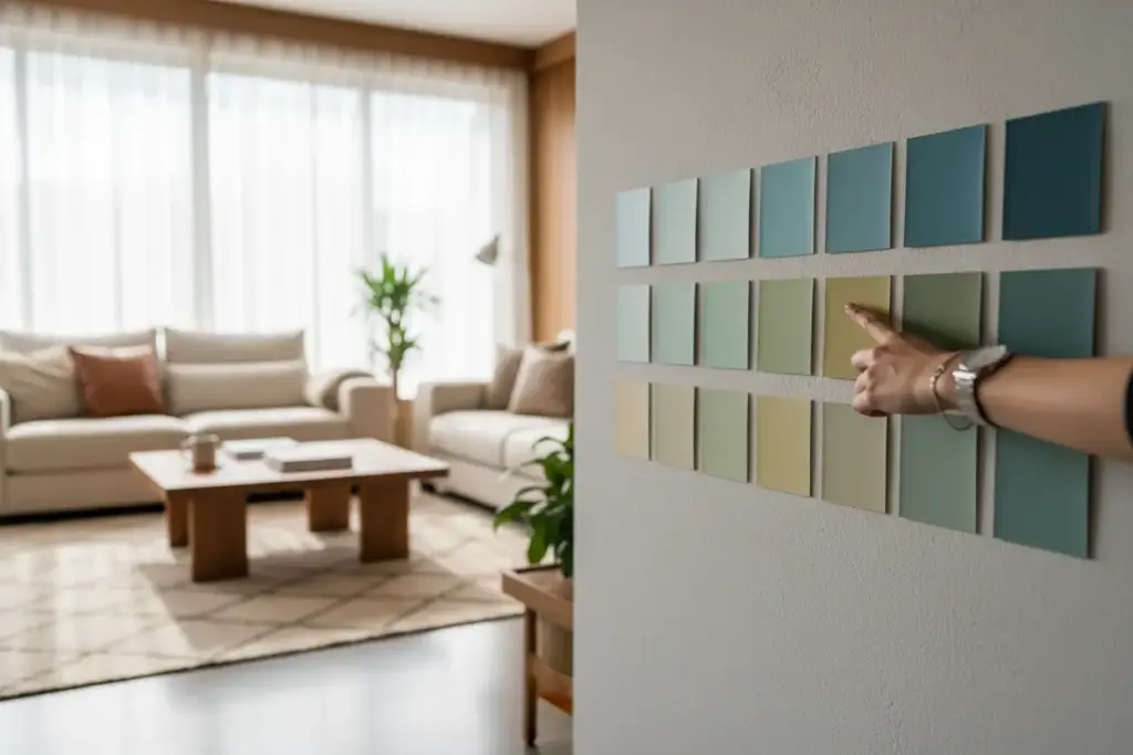 Nós sempre orientamos o teste de cor porque a iluminação (natural ou artificial) altera drasticamente a percepção da tinta no ambiente. Aplicar uma pequena amostra na parede permite observar como o tom se comporta em diferentes horários do dia, evitando surpresas indesejadas após a pintura completa.